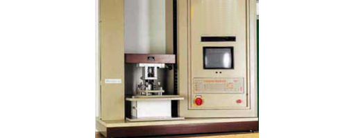 Für die Durchführung von Stauchdruckprüfungen eignet sich die elektromechanische Stauchdruckpresse. Hier können die z. B. bei der Blocklagerung auftretenden Stapelbelastungen praxisgerecht simuliert werden. Mit einer maximalen Prüfkraft von 200 kN und einem kraft- und weggeregelten Vorschub von 0,2 bis 500 mm/min gewährleistet diese Prüfeinrichtung einen umfangreichen Anwendungsspielraum.
